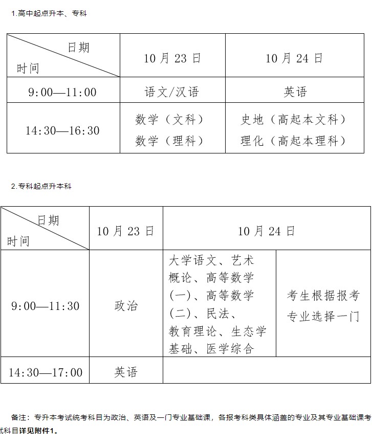 (二)考试科目和时间安排